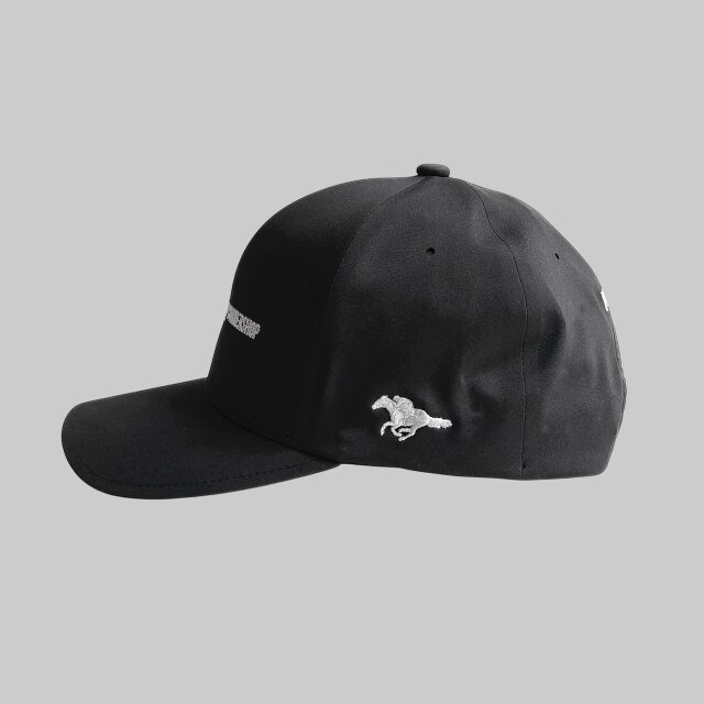 「サラブレッド」と「三冠を彷彿とさせるワード」さりげなく配された各所の刺繍、こちらは全てキャップと同色で仕上げたクールなデザイン。