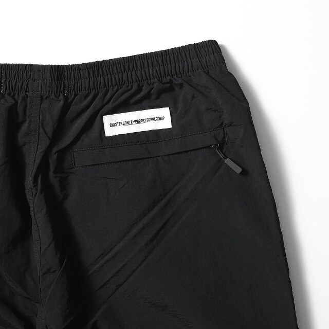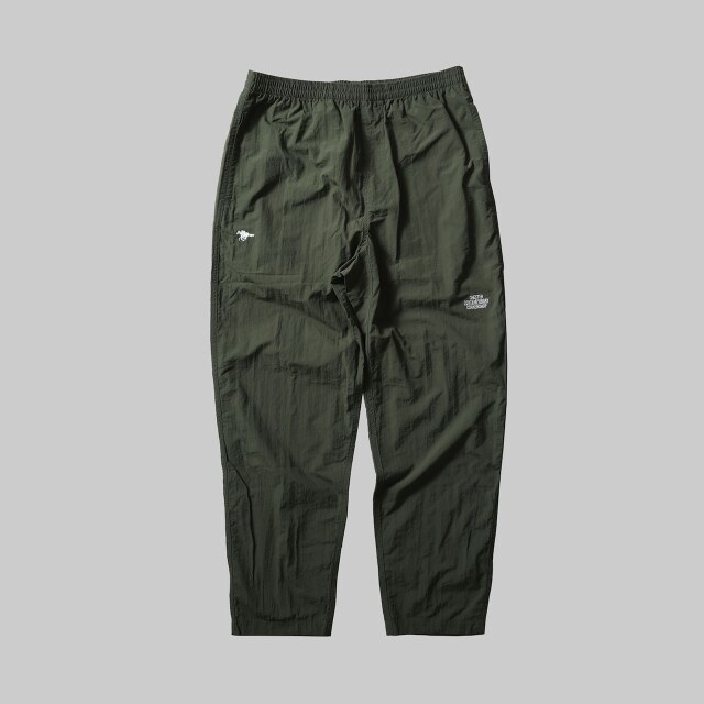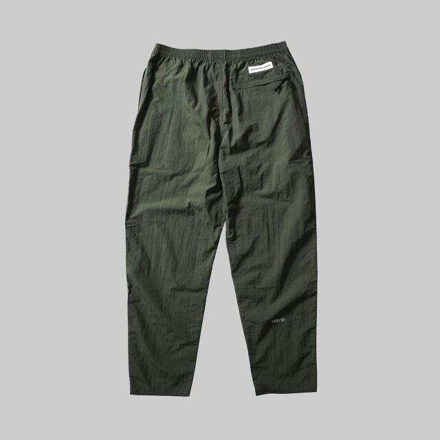 撥水加工された軽い素材、ゆとりのあるワタリ、膝下から裾へかけての絶妙なテーパードがリラックスとシャープさを兼ね備えた大人なジョガーパンツ。
